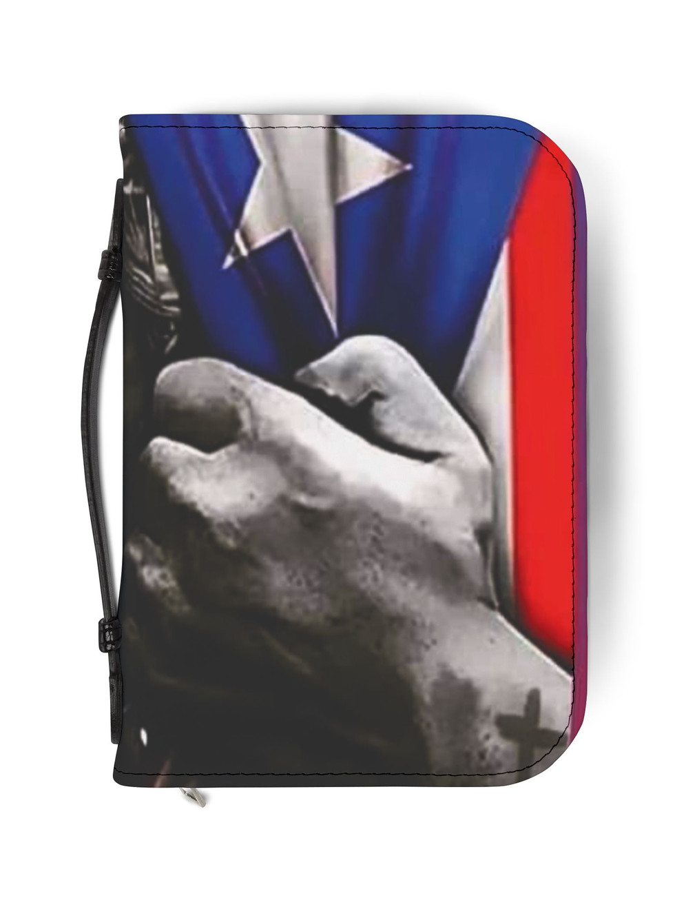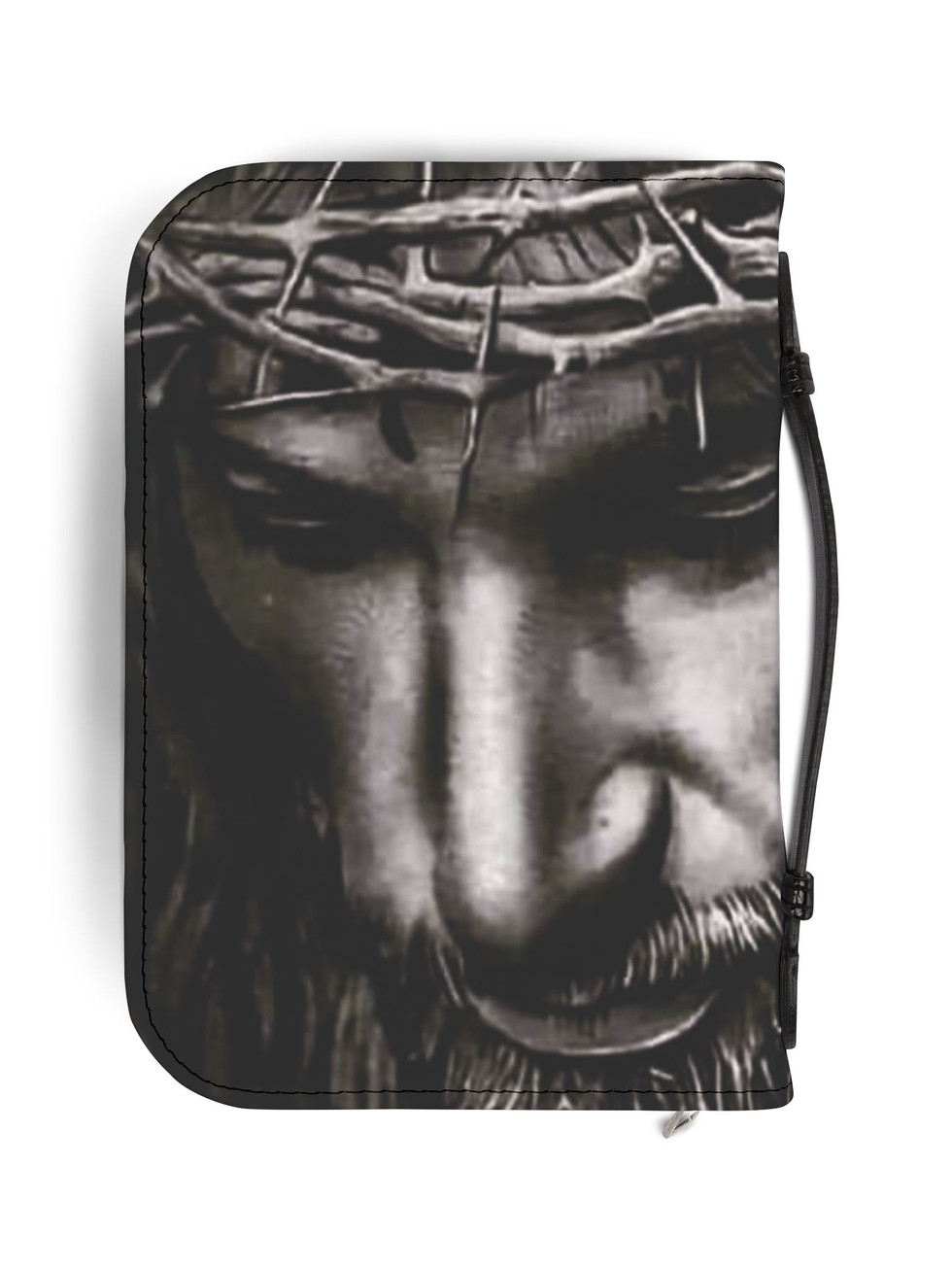 This PU leather Bible cover wraps faith and function into one comforting companion. The design blends a solemn grayscale image of Christ with subtle patriotic colors, creating a quiet, reverent presence that sits gently in your hands. Soft yet durable, the zipper closure and stitched handle make it easy to carry to church, study groups, or quiet moments at home. Inside, thoughtful compartments keep your Bible, notes, pens, and small keepsakes organized so your time of reflection stays uninterrupted. Recommended sizing guidance helps ensure a comfortable fit for most Bibles.