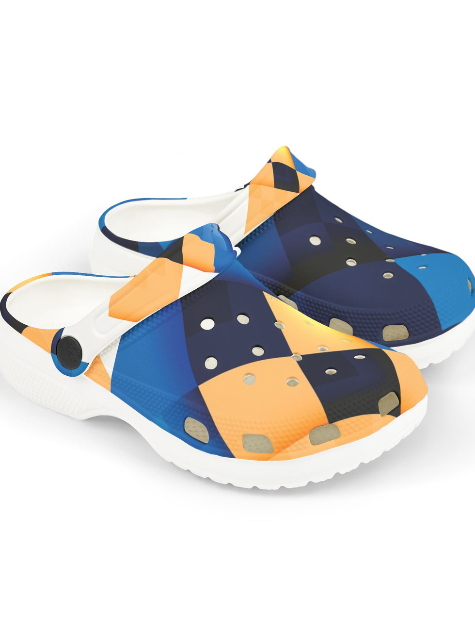 Kids Foam Clogs — Blue & Orange Geometric Pattern